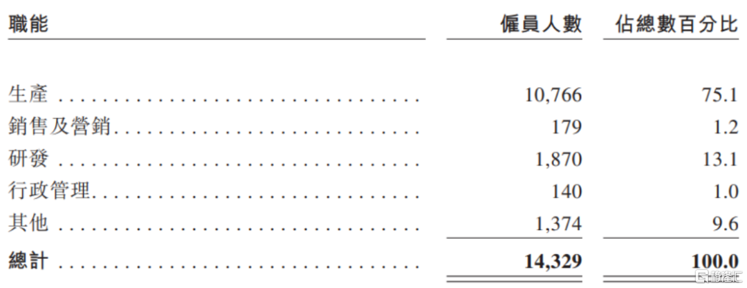 按职能划分的员工明细,图片来源于招股书