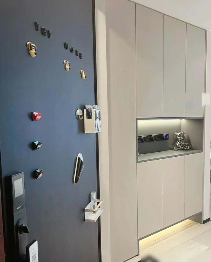 玄关鞋柜底部留空放拖鞋,这个细节很实用。每天进出门换鞋省事多了。中间镂空层放钥匙口罩,再也不会找不到东西。这些小设计看着不起眼,实际用起来才知道多方便。