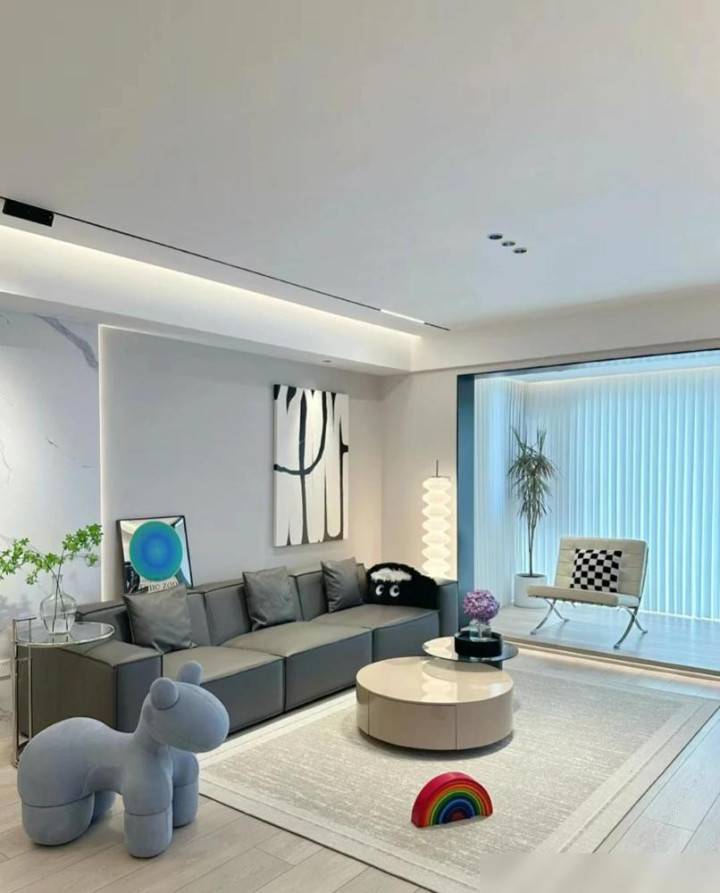 这套房子的装修确实让人眼前一亮。难怪能吸引那么多邻居去参观。客厅的无主灯设计现在很流行,磁吸轨道灯搭配射灯,光线层次感一下子就出来了。不过这种设计对层高有要求,普通住宅得提前规划好。