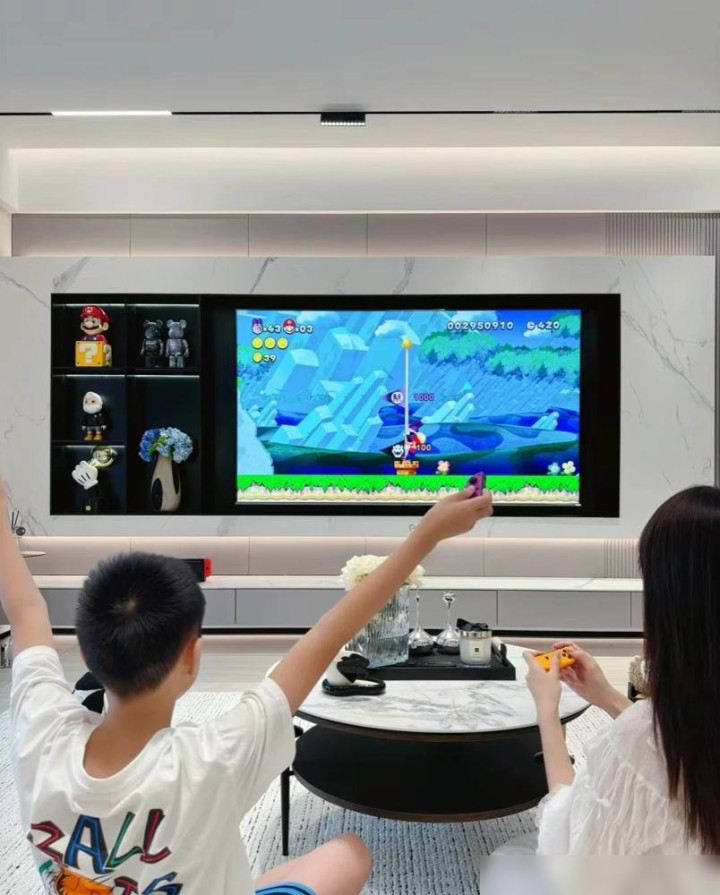 电视背景墙用岩板加不锈钢搁架,简约又显档次。但岩板价格不便宜,施工也得找老师傅,不然接缝处理不好很碍眼。悬空电视柜打扫方便,底下还能藏扫地机器人。